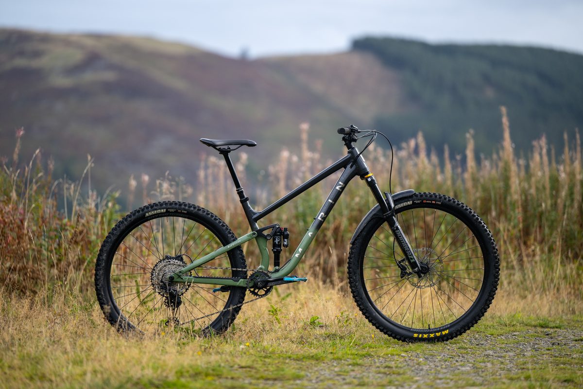 The Rift Zone’s geometry heavily influences its aggressive trail character, blending a slack front end with a compact rear. A 65.5-degree head tube angle and a generous reach push the front wheel far forward, creating a stable platform for steep descents. To balance this, Marin utilizes short 430mm chainstays across all frame sizes. This tight rear center makes the bike eager to change direction and easy to manual, though it requires the rider to maintain an active, forward-biased posture to keep the front tire gripping in flat or sweeping corners.
