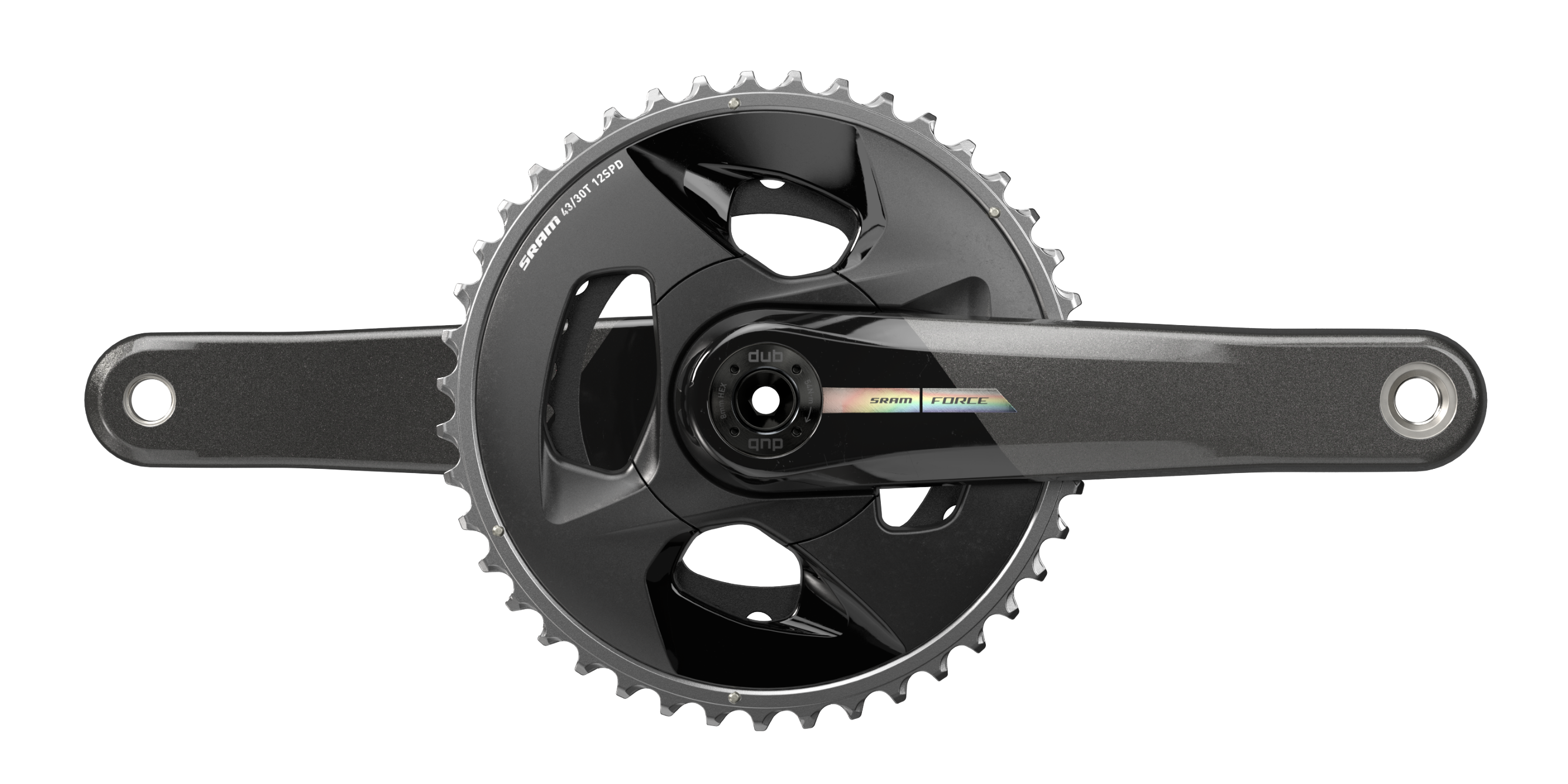 X-Range gearing crankset with 43/30T chainrings and wide chainline for tire clearance. Features crisp front shifts and DUB bottom bracket.